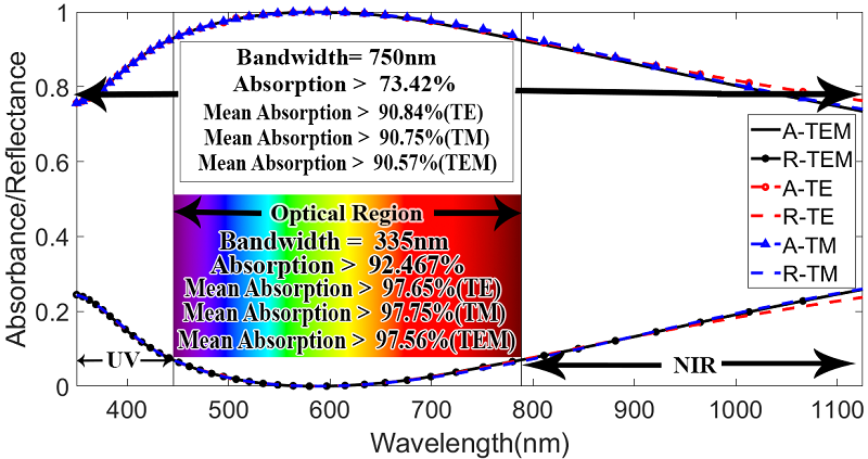A Wide-Angle, Enhanced Oblique Incidence, Bend-Able Metamaterial Absorber Employed in Visible Region With a Sun Shape Resonator